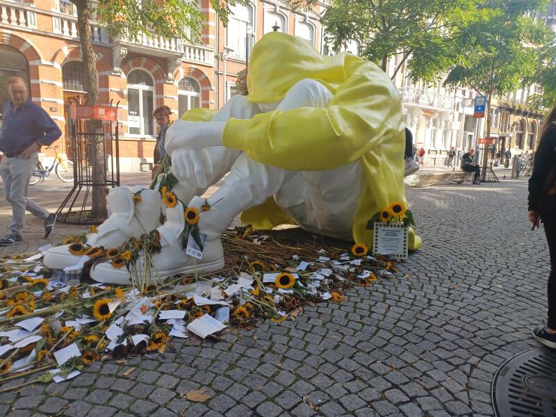 Saskia Stolz, een talentvolle kunstenares uit Nederland, maakte het standbeeld "stille strijd". Een beeld dat de problematiek van zelfdoding uit de taboe haalt... Dit beeld verhuist sinds 2022 in Nederland elke 2-3 weken van locatie, om in elke stad de problematiek van zelfdoding bespreekbaar te maken... wil je meer weten? check volgende site: StilleStrijd of zoek op You tube onder "stille strijd on tour"